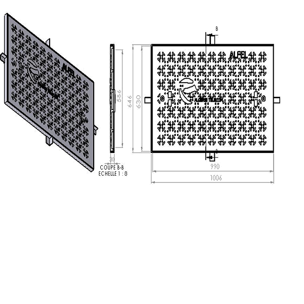 الفئة: B125. المعيار: NA 16320 أو EN 124. القفل: صامولة الترباس. ملحوظة: شعار أو علامة محددة ممكنة