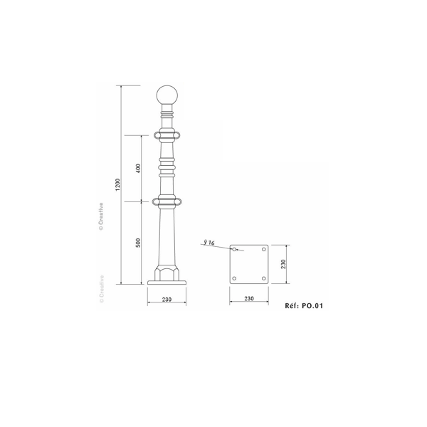 طريقة تثبيت الأرض: بواسطة (4) قضبان ملولبة مقاس 16 مم